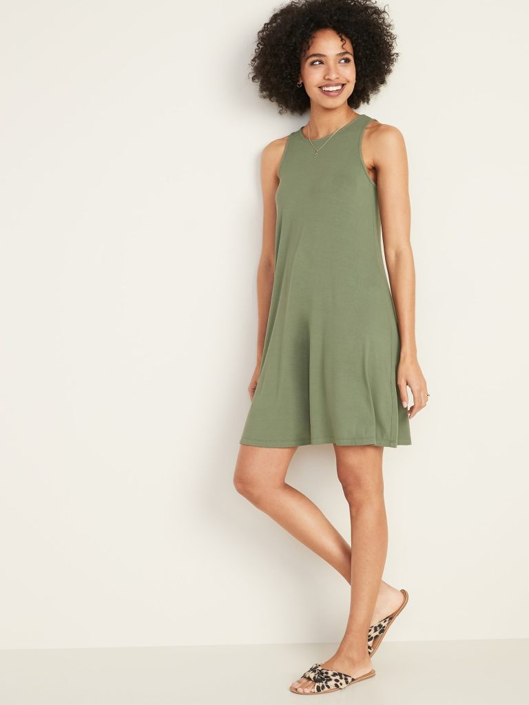 2. Dresses: I wear dresses almost everyday to work. Again, Old Navy has so many stylish and comfortable styles at such a great price. This sleeveless jersey swing dress is one of my favorite styles. It comes in many different prints and solids. It’s A line shape is flattering on all body types and it is comfortable.