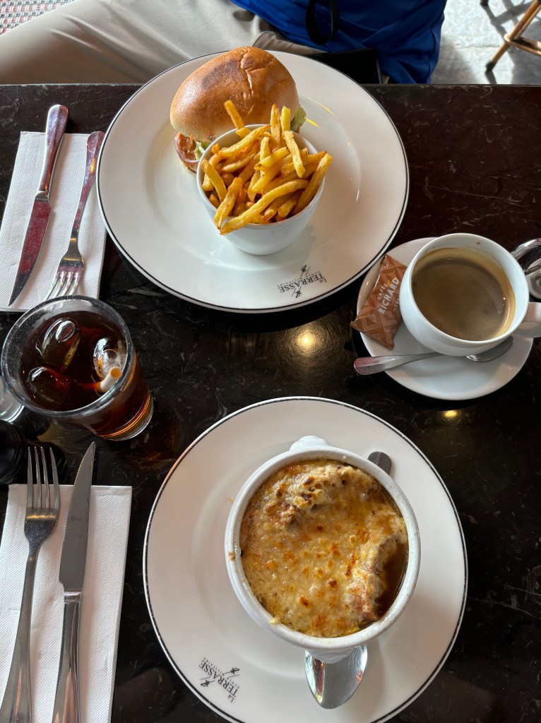 We then ate a late lunch/early dinner at a neat cafe near the metro. I had French soup and J had a veggie burger and French fries! YUM!!