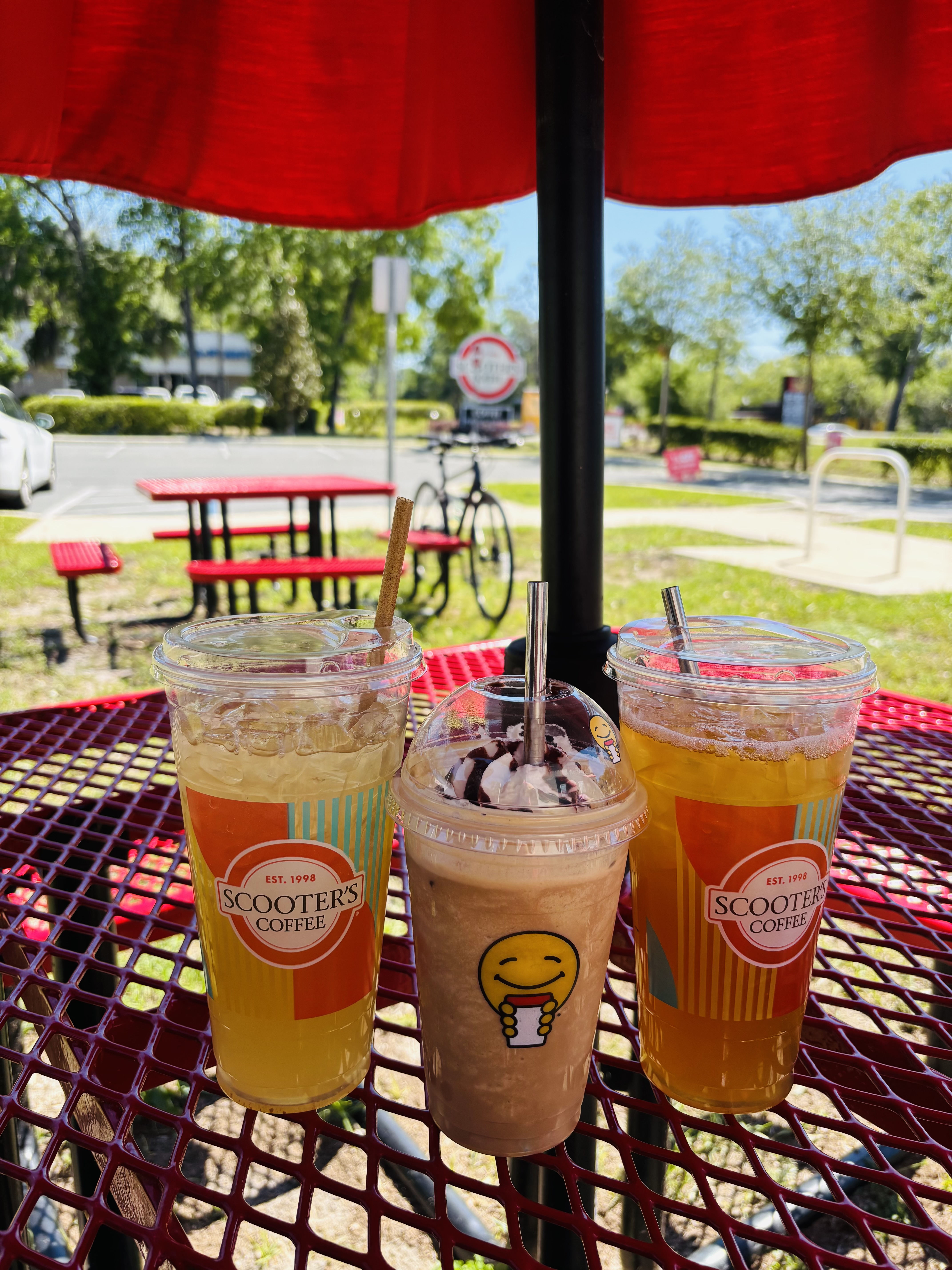 At Scooters, we walked through the drive thru. As we were leaving, a guy on his bike was coming to order a drink. He ended up sitting down with us and telling us his story. He was a veteran and is a senior at UF studying geology. He hopes to pursue a master’s degree with a focus in fossils. He also told us the story behind each of his tattoos.