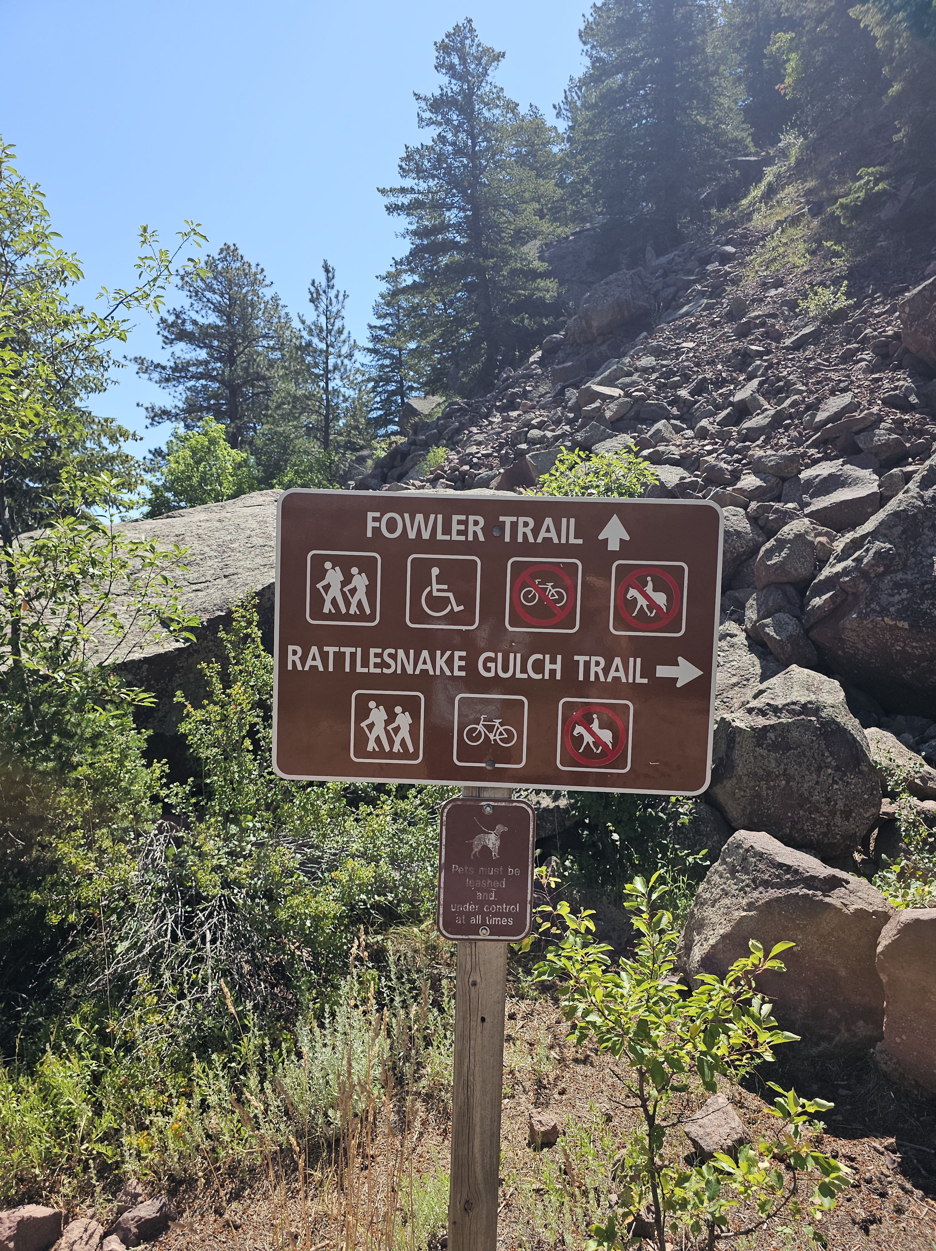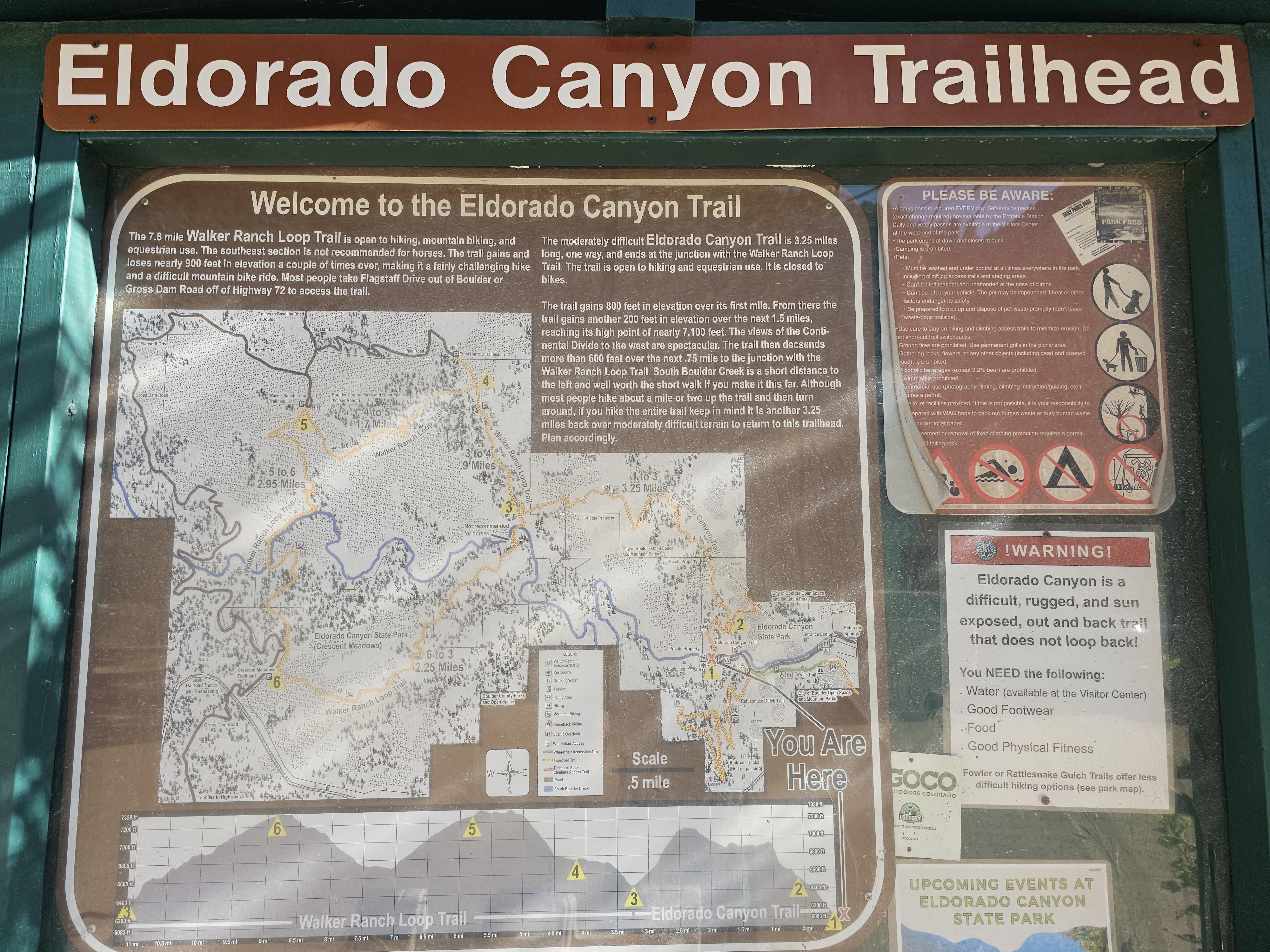 Early morning wakeup to hike Eldorado Canyon State Park. Now, trying to find the Eldo Shuttle was an adventure. (The parking at many of the state parks was minimal, so we had to park at an off-site location for many of the hikes and take a shuttle to the trailhead.)